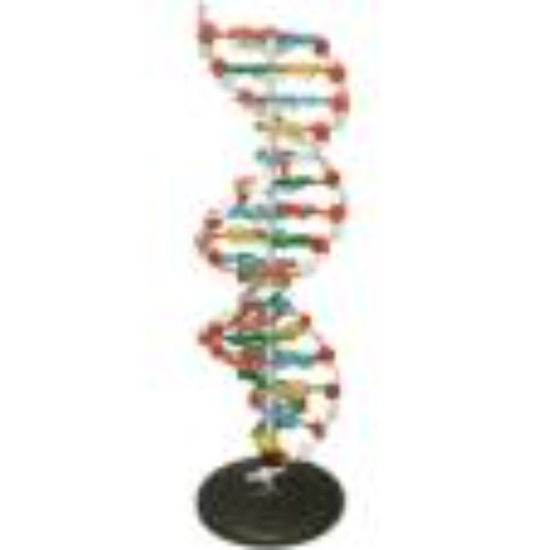 Модель дезоксирибонуклеиновой кислоты используется для демонстраций в разделах “Человек и его здоровье” и “Общая биология”. Модель упрощена, адаптирована к школьной программе. Модель представляет многократно увеличенный виток спирали дезоксирибонуклеиновой кислоты. На модели приняты следующие условные обозначения: остаток фосфорной кислоты – круг, расположенный на периферии модели; пятиугольник белого цвета – дезоксирибоза; цветные многоугольники – азотистые основания аденин, тимин, гуанин, цитозин; Принятые формы условны.