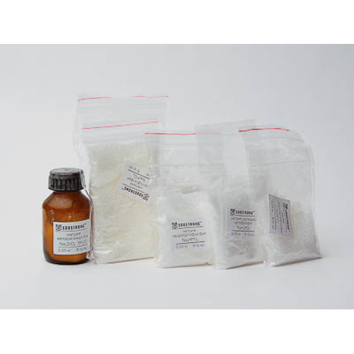 Состав набора (кг): Калия гидроортофосфат — 0,05. Натрия метасиликат 9-в — 0,05. Натрия ортофосфат — 0,1. Натрия гидроортофосфат — 0,05. Натрия дигидроортофосфат — 0,05.