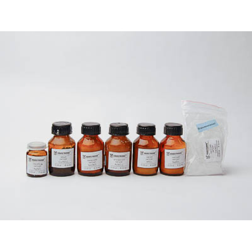 Состав набора (кг): Алюминия нитрат — 0,05. Аммония нитрат — 0,05. Калия нитрат — 0,05. Кальция нитрат — 0,05. Меди нитрат — 0,05. Натрия нитрат — 0,05. Серебра нитрат — 0,02.