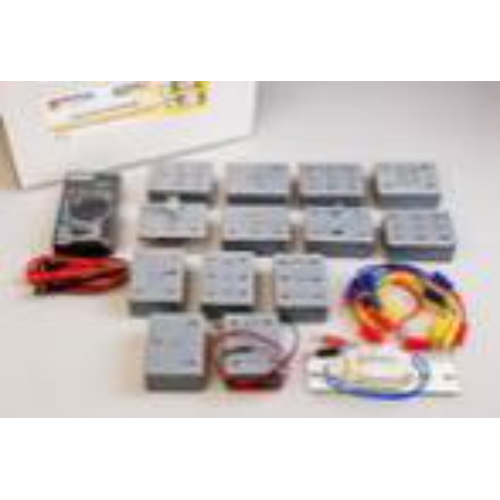 Набор предназначен для проведения практических работ по электродинамике (не менее 30 работ). Габаритные размеры в упаковке (дл.*шир.*выс.), см: 29*20*5,5. Вес, кг, не более 1,55. Комплектность: модуль с конденсаторами 4,7 мкФ, 22 мкФ, 33 мкФ – 1 шт., модуль с конденсаторами 220 мкФ, 470 мкФ, 1000 мкФ – 1 шт., модуль с конденсаторами 10 мкФ, 47 мкФ, 100 мкФ – 1 шт., модуль с резисторами 10 Ом, 30 Ом, 10 кОм – 1 шт., модуль с резисторами 51 Ом, 300 Ом, 1 кОм – 1 шт., модуль с полупроводниковым диодом и светодиодом – 1 шт., модуль с фотоэлементом – 1 шт., модуль с лампочками 6 В – 1 шт., модуль с транзистором – 1 шт., модуль с переключателем – 1 шт., модуль с терморезистором и фоторезистором – 1 шт., модуль с диодным мостом – 1 шт., модуль с переменным резистором 10 Ом – 1 шт., катушка с сердечником (дроссель) – 1 шт., мультиметр – 1 шт., соединительные провода – 8 шт., учебное пособие «Лабораторные наборы по курсу физики» (автор Е.Ю. Косарева – 68 страниц – печать офсетная, обложка полноцветная) – 1 шт., руководство по эксплуатации – 1 шт. Для удобства сборки электрических цепей все элементы вмонтированы в пластиковые модули (по одному, два или три элемента в одном модуле) с клеммами под провода. Дно модуля с переменным резистором выполнено из прозрачного пластика.