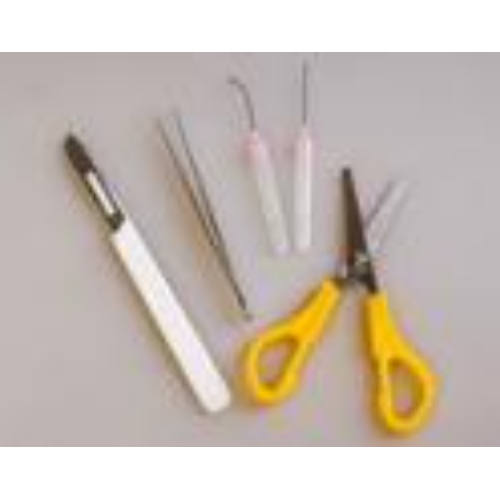 Комплектность: скальпель хирургический – 1 шт., ножницы – 1 шт., пинцет – 1 шт., игла препаровальная прямая – 1 шт., игла препаровальная угловая – 1 шт.