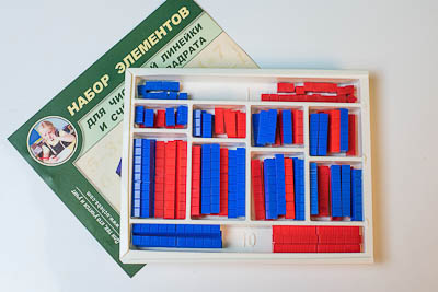 Изделие предназначено для использования в качестве раздаточного материала на уроках математики в начальной школе. Габаритные размеры в упаковке (дл.*шир.*выс.), см: 29*23*3. Вес, кг, не более 0,46. Набор состоит из счетных элементов красного и синего цвета, изготовленных из пластмассы. Число «1» обозначено кубиком 1*1*1 см, «2» – элементом размером 2*1*1 см, и так далее. На элементах нанесены сантиметровые деления. Общее количество элементов — 110. Изделие сопровождается руководством по эксплуатации. Упаковано в закрывающийся крышкой блистер с десятью пронумерованными ячейками, соответствующими размеру счетных элементов.