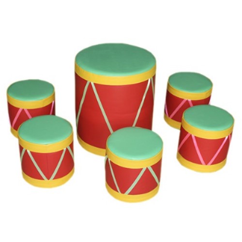 В комплекте: пуф большой — 1 шт., пуф малый — 5 шт. Размеры: пуф большой д.40*45 см., пуф малый д.25*25 см. Материалы: ВИК (винилискожа), поролон. Описание: Легко трансформирующаяся безопасная мебель из поролона и винилискожи может быть использована как для оформления интерьера детского сада, ролевых игр, так и для организации физкультурных занятий детей в детских садах и дошкольных учреждениях. Данные по транспортировке: объем 0,3 м3., вес 5 кг.