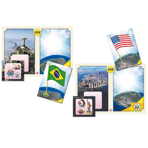 Автор: А.В. Наволоцкий Настольно-печатная игра предназначена для организации игровой и познавательно-исследовательской деятельности детей в детском саду и дома; может использоваться в качестве игрового и наглядного материала в следующих образовательных областях: речевое развитие, познавательное развитие, социально-коммуникативное развитие, а также на специально организованных занятиях коррекционных педагогов, логопедов и дефектологов. Также может использоваться в начальной школе. Габаритные размеры в упаковке (дл.*шир.*выс.), см: 22*16*3. Вес, кг, не более 0,3. Комплектность: игровое поле – 12 шт., карточки – 24 шт., руководство по эксплуатации – 1 шт. Игра состоит из 12 полноцветных игровых полей формата А5 и 24 полноцветных карточек. Карточки и игровые поля изготовлены из картона и ламинированы пленкой. Каждое игровое поле посвящено одной из стран мира. В левой части планшета дано изображение достопримечательности или местности, характерной для данной страны, в правой – фрагмент карты мира. Овальный значок, повторяющий флаг страны расположен на карте мира в том месте, где находится территория этой страны. В правом нижнем углу изображен герб страны. На карточках для правой части игрового поля изображены флаги и часть карты мира, они служат продолжением изображений на игровых полях и содержат общие с ним детали фона. На карточках для левой части игрового поля дана врезка, на которой представлены предметы, являющиеся как бы «визитной карточкой» данной страны. Контуры врезки (вырезанные уголки) служат подсказкой.
