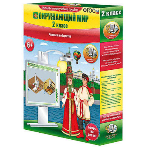Интерактивное учебное пособие разработано с учётом ФГОС НОО и примерной программы по окружающему миру начального общего образования. 1. Семья. 2. Город и село. 3. Наземный и подземный транспорт. 4. Водный и воздушный транспорт. 5. Мир искусства. 6. Путешествие по музеям. 7. Путешествие по Москве. 8. Путешествие по Санкт-Петербургу. 9. Народы России.