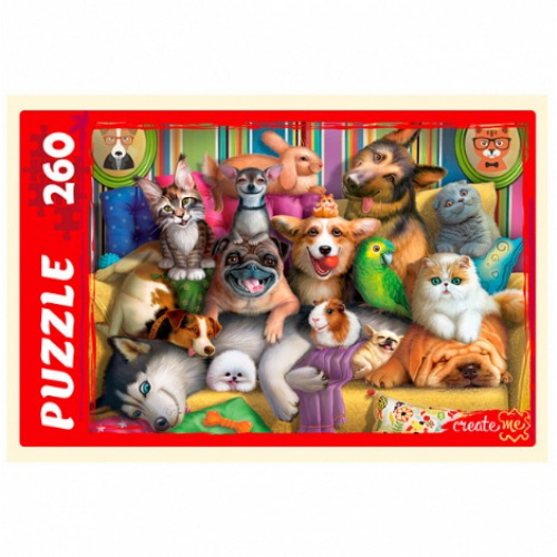 Размер упаковки: 25,1*18,1*4 см Функционал: пазл, сборная картинка Упаковка: картонная коробка Страна обладатель бренда: Россия Материал: картон Комплектация: детали пазла — 260 шт. Возраст ребенка: от 5 лет Пазл представляет собой картинку, состоящую из некрупных деталей разной формы, соединяющихся замком, который делает конструкцию прочной. Цель — собрать их все воедино, чтобы получилась цельная картина, которую затем можно оформить рамкой, багетом и повесить на стену. Каждая деталь имеет индивидуальную форму и легко соединяется с другой. Тематика: кошки и собаки. Сборка пазла прекрасно развивает образное и логическое мышление, мелкую моторику, умение видеть часть и целое и сопоставлять их, также способствует развитию усидчивости, концентрации внимания, памяти. Сборка пазла может быть как индивидуальным, так и коллективным занятием, видом релакс-терапии. Такие виды деятельности хороши в детских учреждениях, санаториях и домах отдыха. Все элементы пазла выполнены из высокопрочных и износостойких материалов, обеспечивающих многократность сборки и стойкость окрашивания поверхности без последующего выгорания и выцветания.