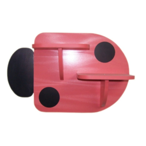 Размер: 61*22*40 см. Материал: ЛДСП Описание: Цвет красный, декоративные элементы — черного цвета. Задняя панель выполнена в форме божьей коровки. На панели закреплены две полочки на консолях в шахматном порядке. Данные для транспортировки: объем 0,01 м3., вес 6 кг.