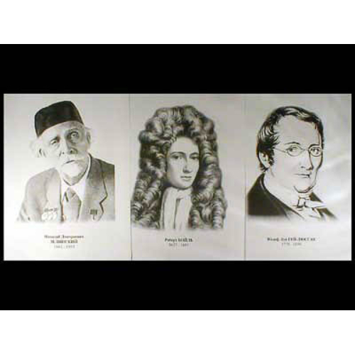 Предназначены для демонстрации на уроках при изучении важных научных открытий, сделанных учеными. Представляют собой комплект портретов формата А3 в количестве 16шт., выполненных на качественной белой бумаге. На портретах указаны фамилии (с именами, либо с именами и отчествами) и даты жизни ученых. Состав комплекта: 1. Байер Адольф. 2. Берцелиус Йёнс Якоб. 3. Бойль Роберт. 4. Бутлеров Aлександр Mихайлович 5. Вудворд Роберт 6. Гей-Люссак Жозеф Луи 7. Дальтон Джон 8. Зелинский Николай Дмитриевич 9. Зинин Николай Николаевич 10. Лавуазье Антуан Лоран 11. Ломоносов Михаил Васильевич 12. Менделеев Дмитрий Иванович 13. Несмеянов Александр Николаевич 14. Полинг Лайнус Карл 15. Севергин Василий Михайлович 16. Ферсман Александр Евгеньевич