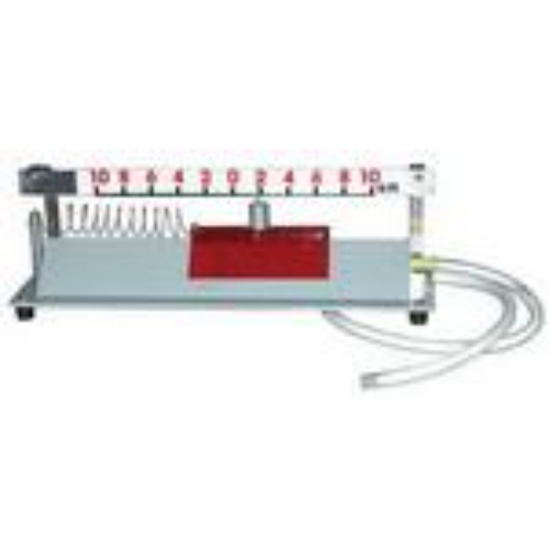 Прибор предназначен для демонстрации механических колебаний. Габаритные размеры в упаковке (дл.*шир.*выс.), см: 31*11*11. Вес, кг, не более 0,4. Жесткость пружины, Н/м: 0,6. Комплектность: прибор (в сборе) – 1 шт., эластичный шланг – 1 шт., металлический цилиндр – 1 шт., руководство по эксплуатации – 1 шт. Прибор состоит из основания с полой прямоугольной призмой, на гранях которой имеются ряды равноудаленных друг от друга маленьких отверстий. На торце призмы установлен штуцер для присоединения эластичного шланга, через который подается воздух от воздуходувки, пылесоса в режиме нагнетания или ручного насоса с ресивером (компенсационной емкостью). Над призмой прибора установлена горизонтальная шкала «10 – 0 – 10» с оцифровкой через 2 см. На гранях призмы находится пластмассовая каретка с вертикальным стержнем для надевания на него металлического груза, если необходимо изменить массу каретки. К каретке прикреплена пружина, второй конец которой прикреплен к стойке.