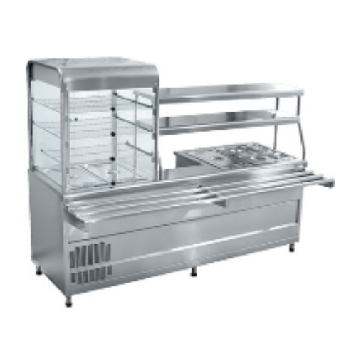 Прилавок-витрина холодильный мармитный универсальный ПВХМ-70КМУ нерж. (2275 мм,витрина слева)