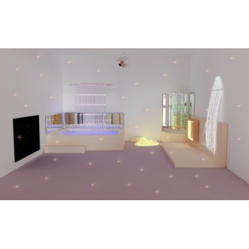 Входящее оборудование в данную комнату: 1. Интерактивная воздушно-пузырьковая трубка «Аура» c пультом управления (d-100, h-1500 мм)-2 шт 2. Мягкая платформа для воздушно-пузырьковой трубки угловая 800х800х300 мм. -1 шт 3. Комплект из двух акриловых зеркал для воздушно-пузырьковой трубки 1500х800 мм. RG198 -1 шт 4. Интерактивный сухой бассейн с пультом управления 1500х1500х500х200 мм. (Рекомендуемое количество шариков — 1300 шт.)-1 шт 5. Прозрачный шарик для сухого бассейна -1300 шт. 6. Подставка к сухому бассейну 1000х200х200 мм.-1 шт 7. Акриловая зеркальная панель к сухому бассейну. 1500х500мм. -2шт. 8. Фиброоптический модуль «Веселое облако» (100 волокон) с п/у 1192х992 мм. -1 шт 9. Зеркальный шар с мотором (необходим источник света)-1 шт 10. Источник света к зеркальному шару, 300х110х80 — 1 ш 11. Панно «Бесконечность» 400х400 мм. -1 шт 12. Фиброоптический занавес с деревянным гребнем (100 волокон) с п/у 1000х51х45 мм. -1 шт 13. Панно “Звездное небо” без п/у 700х700 мм. -1 шт 14. Мат настенный, толщина 10 см. 1000х1000х100 мм. -2 шт. 15. Мат напольный, толщина 10 см 2000х1000х100 мм. -1 шт; 16. Мягкий кубик с пучком волокон -100(кол-во волокон 100 шт) 350х350х250 мм. -1 шт