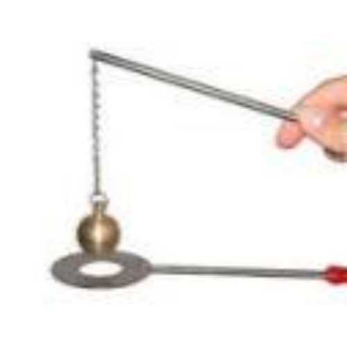 Предназначен для демонстрации явления расширения металлов при нагревании. Габаритные размеры в упаковке (дл.*шир.*выс.), см: 24*6*3. Вес, кг, не более 0,2. Комплектность: кольцо с держателем – 1 шт., шар на цепочке с держателем – 1 шт., руководство по эксплуатации – 1 шт. Шар и кольцо изготовлены из металла, снабжены держателями, выполненными из термоизоляционного материала. Шар свободно проходит через кольцо при их одинаковой температуре. При нагревании шара он расширяется и застревает в