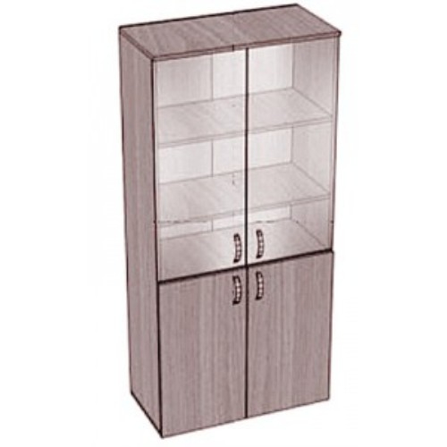 Шкаф с полками закрытый, 4 дверки, стекло. ЛДСП толщиной 16 мм. Толщина кромки ЛДСП — 0.4 мм. Внешние размеры (Ш*Г*В) — 800*400*2000 мм.