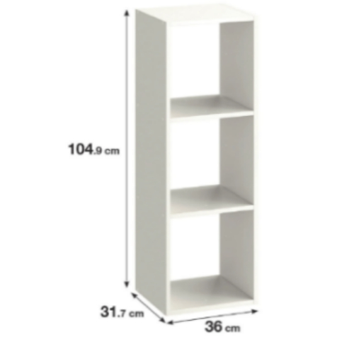 Стеллаж «Куб» на 3 секции — это компактная система хранения для спальни, гостиной или кабинета. Изготовлен из ламинированной древесно-стружечной плиты (ЛДСП) толщиной 16 м, имеющей гладкое покрытие. Цвет поверхности — белый. Размеры: ширина — 36 см, высота — 104,9 см, глубина — 31,7 см. Страна производства — Россия. Особенности Стеллаж можно устанавливать на пол или крепить на стену. При необходимости можно приобрести ножки для установки. В каждую секцию можно установить дополнительную полку. Возможно дополнение секций фасадами и дверцами. Для организации более удобного хранения вещей можно подобрать ящики и короба желаемого цвета под размер полок. Конструкция предназначена для самостоятельной сборки, крепеж входит в комплект. Каждая полка выдерживает нагрузку до 5 кг.