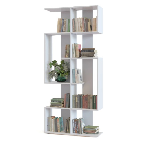 Открытый, оригинальной формы стеллаж станет украшением интерьера и функциональным его дополнением. На полочках стеллажа достаточно места для книг и игрушек, предметов декора или цветов. Расстояние между полочками составляет 30 см. Для надежности конструкции при монтаже стеллаж следует крепить к стене, тогда каждая полочка выдержит до 10 кг. нагрузки. Ламинированная ДСП 16 мм. из которой изготовлен стеллаж, имеет гигиенический сертификат Е1 самой безопасной группы ДСП 16 мм. Торцы деталей облицованы кромкой ПВХ 0,4 мм. Стеллаж установлен на пластиковые опоры. Поставка стеллажа производится в разобранном виде, хорошо упакованным, с подробной инструкцией по сборке и полным комплектом фурнитуры.