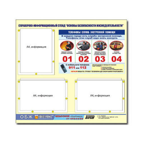 Стенд информационный «Основы безопасности жизнедеятельности» (75х70, 3 кармана)