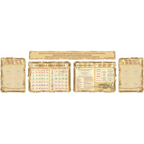 Размеры: 3,63х1,06м. Материал: пластик ПВХ 3мм Рисунок: пленка с фотопечатью 720 dpi, ламинирующая пленка Количество карманов: 8 карманов А4 Количество деталей: 5