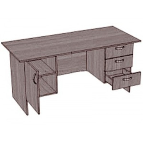 письменный стол с 2 подвесными тумбами — 3 выдвижных ящика + 2 полки с дверкой.Письменный стол изготавливается из ламинированного ДСП, толщиной 16 мм. Цвет ЛДСП — «Светлый бук».