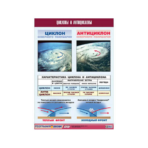 Таблица демонстрационная «Циклоны и антициклоны» (винил 70х100)