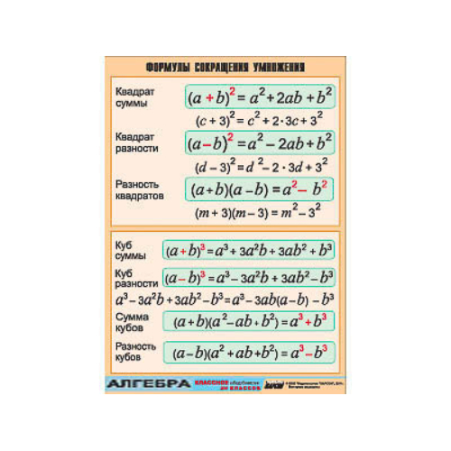 Таблица демонстрационная «Формулы сокращения умножения» (винил 100х140)