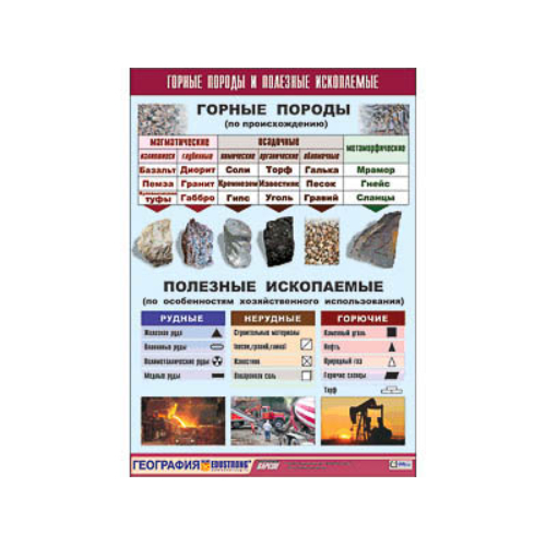 Таблица демонстрационная «Горные породы и полезные ископаемые» (винил 100×140)