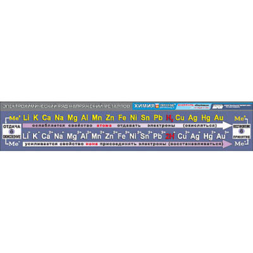 Таблица демонстрационная «Электрохимический ряд напряжений металлов»