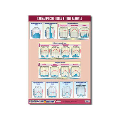 Таблица демонстрационная «Климатические пояса и типы климата» (винил 70х100)