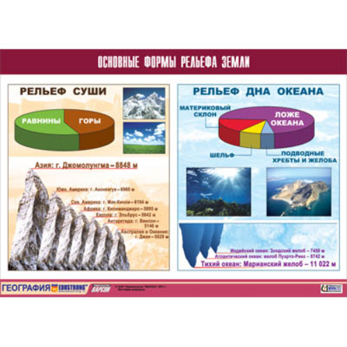 Таблица демонстрационная «Основные формы рельефа Земли» (винил 100х140)