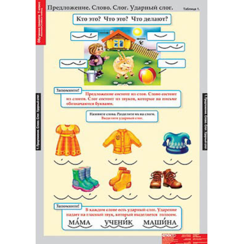 Учебный альбом из 16 листов (формат 68*98см). Предложение. Слово. Слог. Ударный слог. Звуки гласные и согласные. Гласные буквы А, Я. Согласные буквы М, Н, Л, Р. Гласные буквы И, Ы. Гласные буквы О, Ё. Согласные буквы Г, К. Гласные буквы У, Ю. Согласные буквы З, С. Гласные буквы Э, Е. Согласные буквы Д, Т. Согласные буквы Б, П. Согласные буквы В, Ф. Согласные буквы Ж, Ш. Согласные буквы Щ, Ч, Х, Ц, Й. Буквы Ь, Ъ.