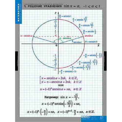 Учебный альбом из 7 листов, формат 68*98 см.Решение уравнения sin x=a. Решение уравнения сos x=a. Решение уравнения tg x=a. Решение уравнения ctg x=a. Решение неравенства сos x a.