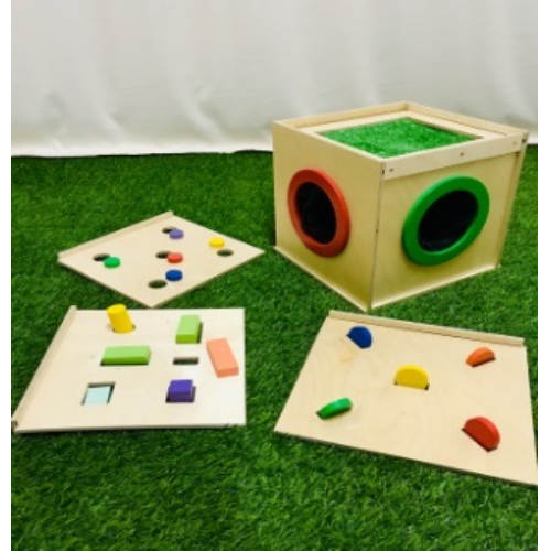 Тактильный ящик предназначен для игр и развития у ребенка логики, воображения, памяти. Ящик состоит из корпуса с дверцей, тактильными ячейками и съемными функциональными крышками. При помощи изделия, ребенок тренирует мелкую моторику рук и осязательные навыки, учится правильно соотносить размеры предметов, изучать цвета. Размер изделия: Высота: 300 мм. Ширина: 315 мм. Глубина: 300 мм. Вес — 5,3 кг. Объем — 0,04 м3.