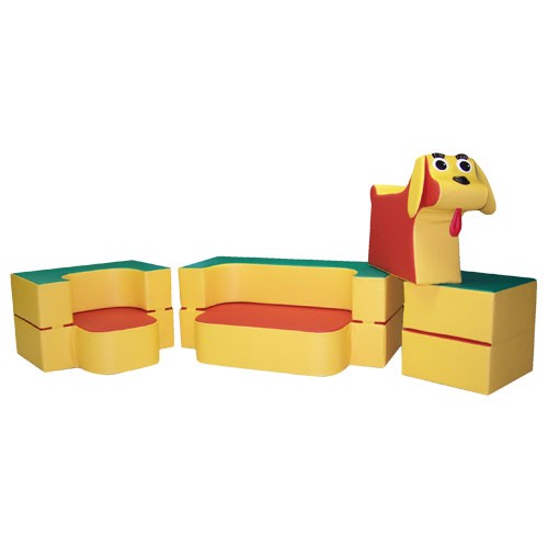 В комплекте: диван 1 шт., кресло 1 шт., игрушка 1 шт., стол 1 шт. Размеры: диван — 100*40*40 см., кресло 65*40*40 см., игрушка — 90*60*20 см., стол — 40*40*40 см. Материалы: ВИК (винилискожа), поролон. Описание: Легко трансформирующаяся безопасная мебель из поролона и винилискожи может быть использована как для оформления интерьера детского сада, ролевых игр, так и для организации физкультурных занятий детей в детских садах и дошкольных учреждениях. Данные для транспортировки: объем 0,5 м3., вес 12,4 кг.