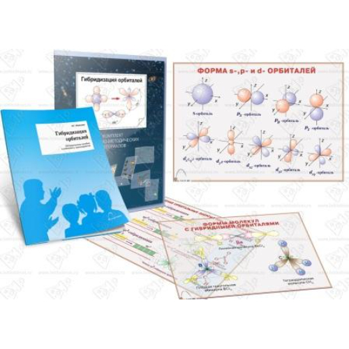 5 транспарантов с методическим пособием. Темы комплекта: форма s-, p- и d- орбиталей, гибридизация валентных орбиталей, изменения орбитальных энергий при гибридизации, пространственная ориентация гибридных орбиталей, формы молекул с гибридными орбиталями.
