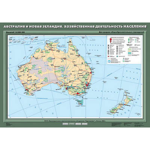 Учебн. карта «Австралия и Новая Зеландия. Хозяйственная деятельность населения» 70х100
