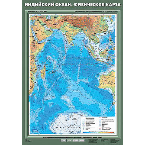 Учебн. карта «Индийский океан. Физическая карта» 70х100