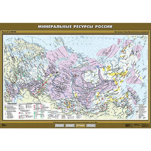 Учебн. карта «Минеральные ресурсы России» 100х140