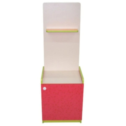 Материал: ЛДСП. Размер: 45*39*130 см. Описание: Основной цвет бук или кремовый. Фасады цветные по желанию заказчика. Закрытая тумба с надстройкой из ЛДСП, на которой посередине расположена полочка. У тумбы одна полка и бортики с двух сторон. Данные для транспортировки: объем 0,04 м3., вес 22 кг.
