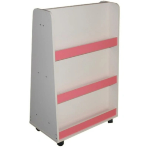 Материал: ЛДСП. Размер: 70*40*103 см. Описание: Основной цвет бук или кремовый. Фасады цветные по желанию заказчика. Двухсторонний стеллаж на колесиках в виде пирамиды. Каждая сторона состоит из трех наклонных полок с бортиками. Данные для транспортировки: объем 0,07 м3., вес 40 кг., 1 место.