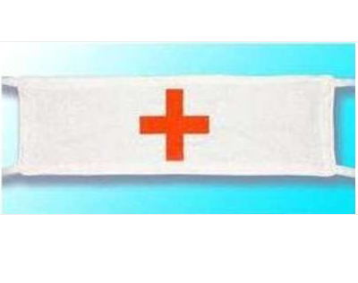 Нарукавные повязка изготовлена из х/б ткани, рисунок наносится методом шелкографии. Нарукавный знак Красного Креста — повязка белого цвета, длиной 50 см и шириной 12 см, в центре ее нашит Красный Крест размером 9 х 9 см (квадраты, образующие концы креста имеют величину 3 х 3 см). Повязку носят на левом рукаве на средней трети плеча.
